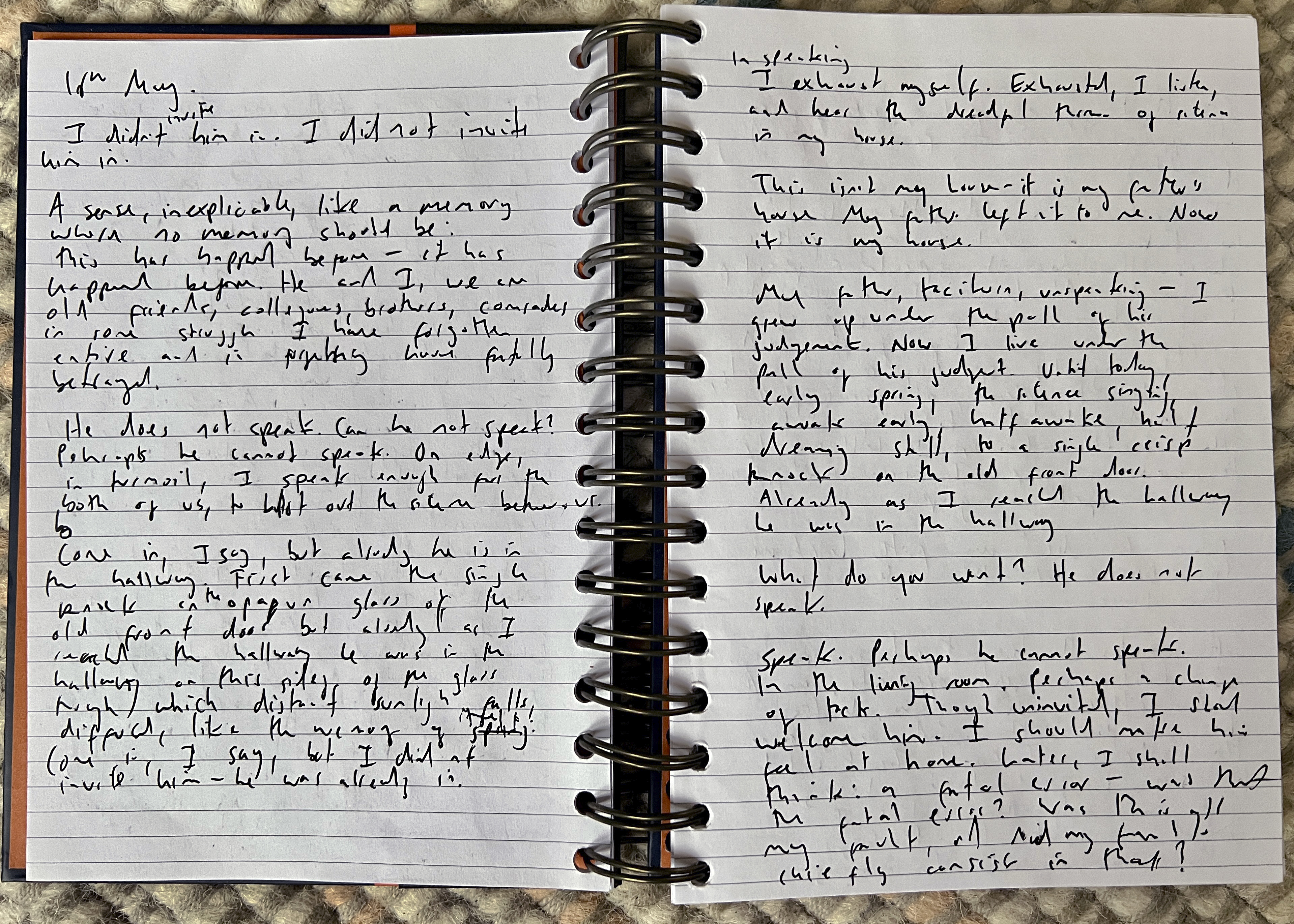 It is, in some ways, representative of the sort of thing I’m writing at the moment. It feels particularly inturned, particularly insular, a quality intimately connected to my experience of M.E., which may or may not be long Covid, over the last two years. Chronic illness is isolating. You find yourself folding back on yourself, in on yourself. There’s a particular quality I think of as fatigue-time that I want to try and capture. I’m not sure if ‘A Knock’ manages this, but it’s an effort in that direction.